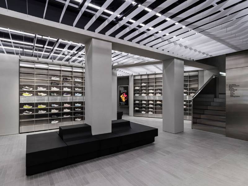 El inmueble que acoge la tienda es un edificio histórico, por lo que su fachada solo se han permitido hacer pequeños cambios; mientras que el diseño del interior ha adoptado un enfoque minimalista que cede el protagonismo a la arquitectura del espacio y destaca su legado en esta calle madrileña tan emblemática.