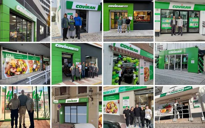 Covirán ha inaugurado doce supermercados en noviembre en España y en Portugal, reafirmando su compromiso con el comercio local, el autoempleo y las relaciones cercanas con sus clientes. Ubicadas en Andalucía (5), Cataluña (2), País Vasco (1), Madrid (1), Valencia (1), así como dos en Portugal, la nuevas aperturas están gestionadas por 60 personas y cuentan con una superficie de sala de ventas en 2.588 metros cuadrados en total.
