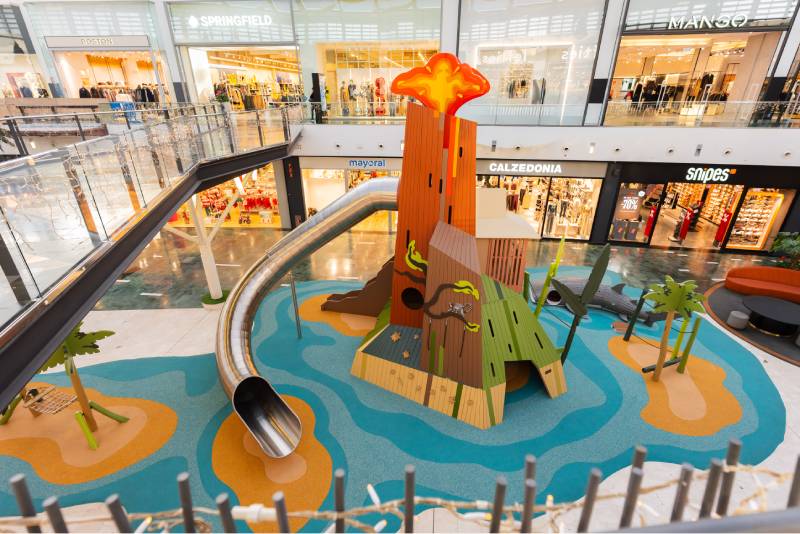 El centro comercial madrileño Islazul inaugura Volcán, un playground temático convertido en una isla de aventuras. Ubicado en la antigua caracola, frente a Milbby y Prenatal, este concepto de ocio familiar destaca por tener un diseño inmersivo, con estética tropical y una cuidada arquitectura lúdica que invita al movimiento, la exploración y el juego libre, dentro de la apuesta del espacio comercial por ofrecer «experiencias únicas para las familias».