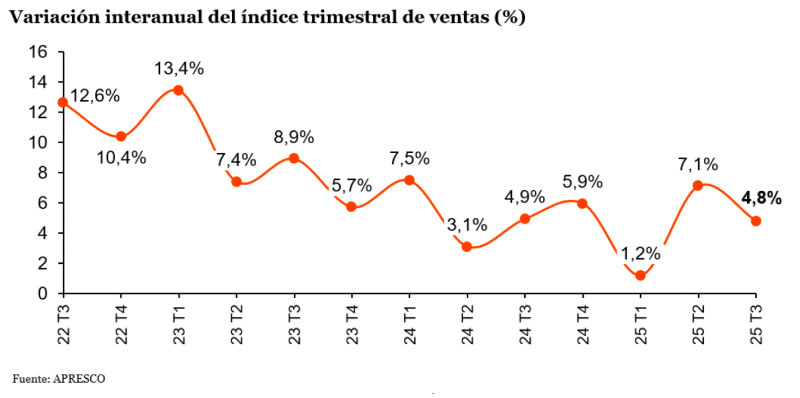 «La evolución de los principales datos operativos del sector, con crecimientos significativos en las ventas y niveles de ocupación en máximos históricos, junto a la positiva evolución del comercio minorista en su conjunto y de las principales variables macroeconómicas, nos permite afrontar con optimismo el cierre del año y el inicio de 2026», afirma Ángel del Monte, director general de Apresco.