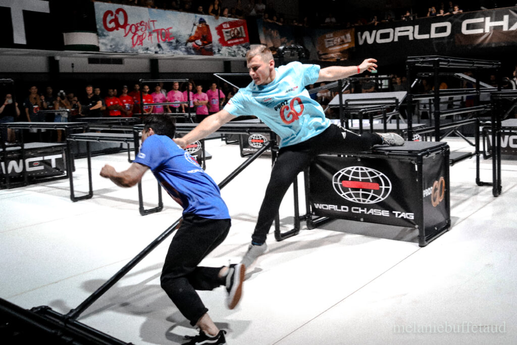 Nacida en 2016 en el Reino Unido, World Chase Tag enfrenta a equipos de atletas, en su mayoría especialistas en parkour y freerunning, dentro de un espacio conocido como el Quad, una pista llena de obstáculos que pone a prueba la velocidad, la agilidad y la creatividad. Los encuentros se desarrollan en rondas de 20 segundos en las que un jugador asume el rol de cazador y otro el de evasor: si el primero logra tocar a su oponente gana la acción, mientras que si el segundo resiste hasta el final del tiempo obtiene el punto.