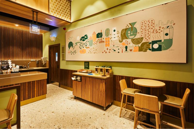 La marca ha celebrado esta apertura con un detalle muy especial para sus primeros 100 clientes. Además de un vaso reutilizable, Starbucks ha preparado para la ocasión una tote bag con una ilustración elaborada por el artista local Carlos Arrojo, quien ya colaboró con la marca en su anterior inauguración en la ciudad. Una obra que simboliza la conexión entre Starbucks, la cultura local y el espíritu de A Coruña, todo ello envuelto en el inconfundible aroma del buen café.