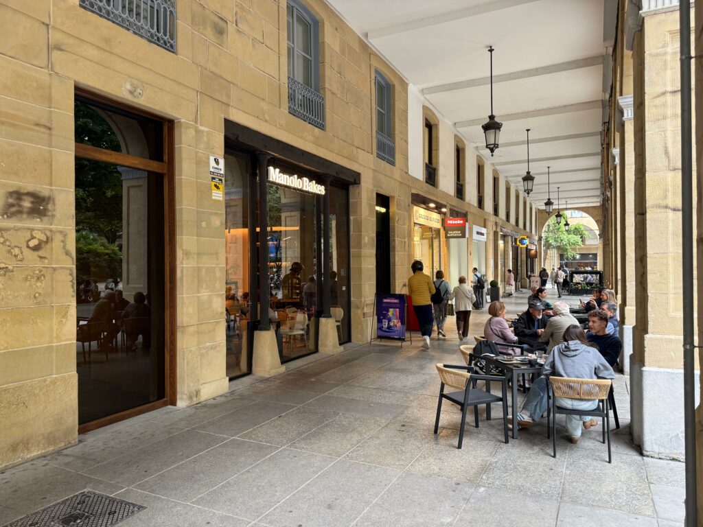 Manolo Bakes ocupa una superficie de 70 metros cuadrados con terraza hacia la icónica plaza, cubierta por los característicos arcos de piedra arenisca donostiarra. Por su parte, Sibuya ocupa una superficie aproximada de 160 metros cuadrados haciendo esquina con la mencionada plaza y la calle Elkano, disponiendo de terraza orientada a ambas calles.