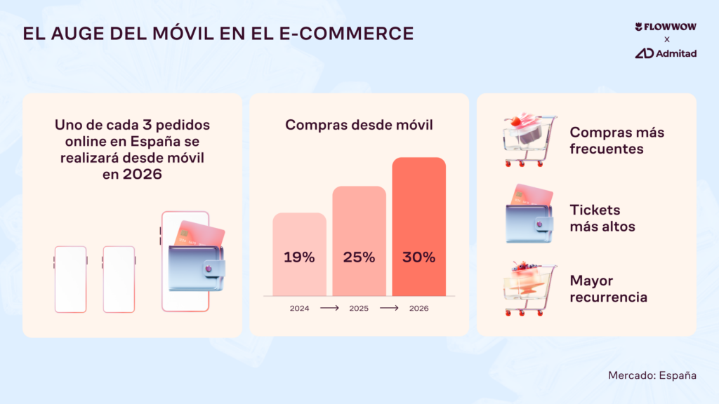 En 2026 uno de cada tres pedidos online en España se realizará desde un teléfono móvil, consolidando el smartphone como la principal vía de compra para los consumidores españoles, al permitir compras inmediatas y en movimiento. Así lo confirma un informe elaborado por Flowwow, marketplace global de regalos que conecta a más de 20.000 tiendas locales con nuevos clientes en más de 40 países, en colaboración con Admitad Data, compañía internacional de performance marketing.
